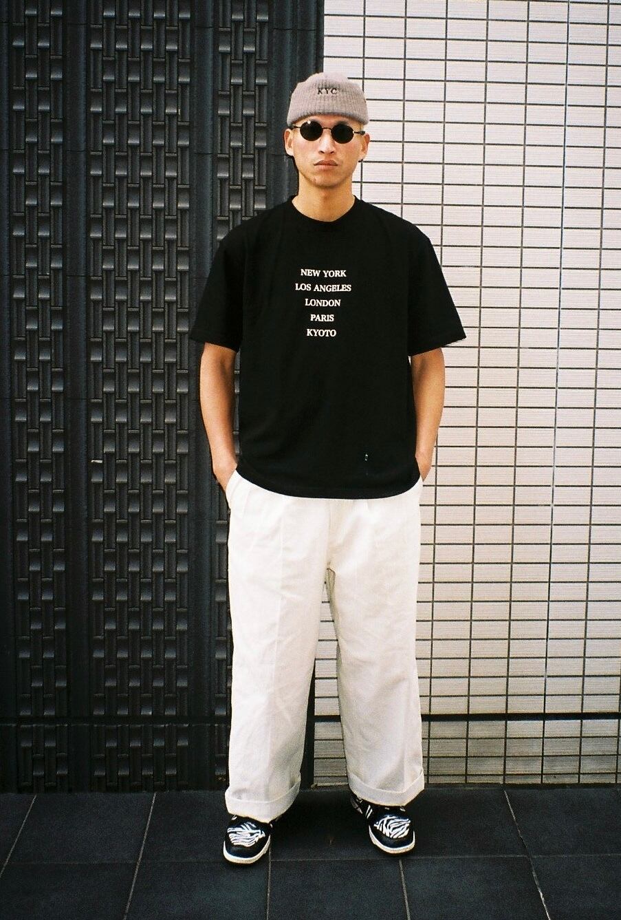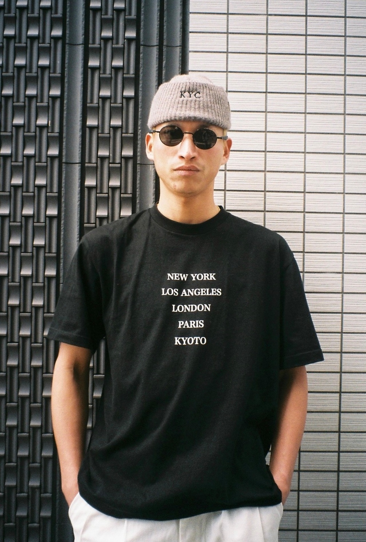 前面には世界各国の都市、日本ではKYOTOとプリントされており、ありそうで無かったユニークなデザインが特徴で、着るだけで遠くへ旅した気分にさせてくれます。