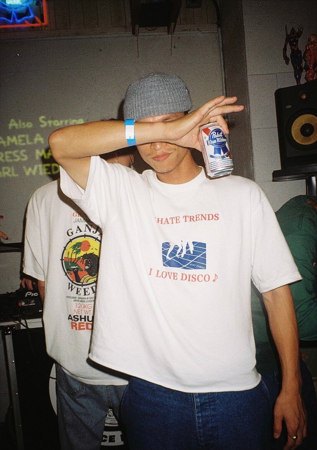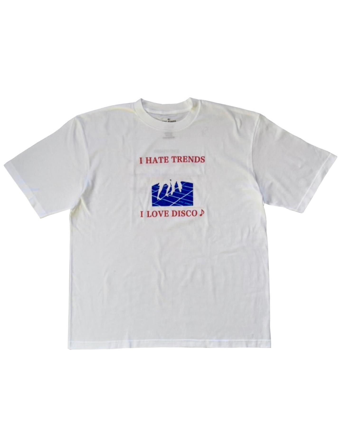 ”I HATE TRENDS I LOVE DISCO ♪ T-SHIRT" WHITE