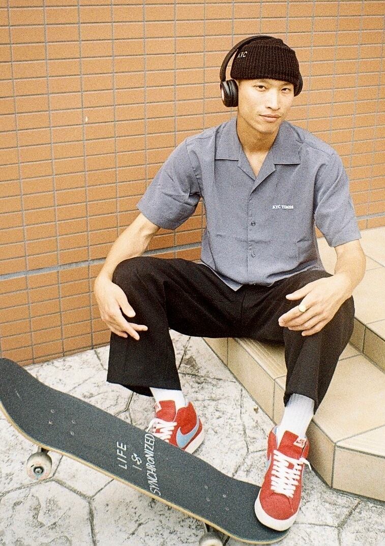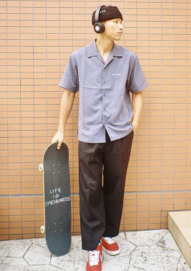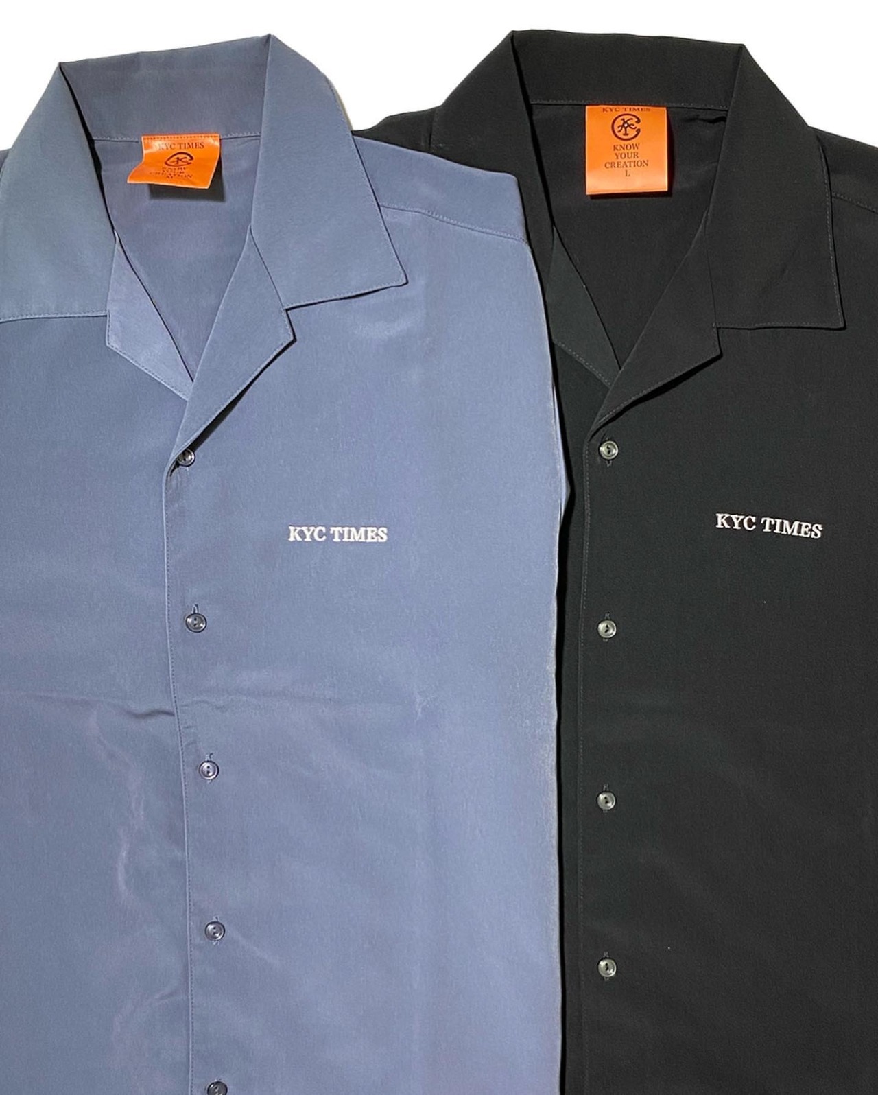 ”KYC TIMES Embroidery Open collar Shirt" STONE BLUE