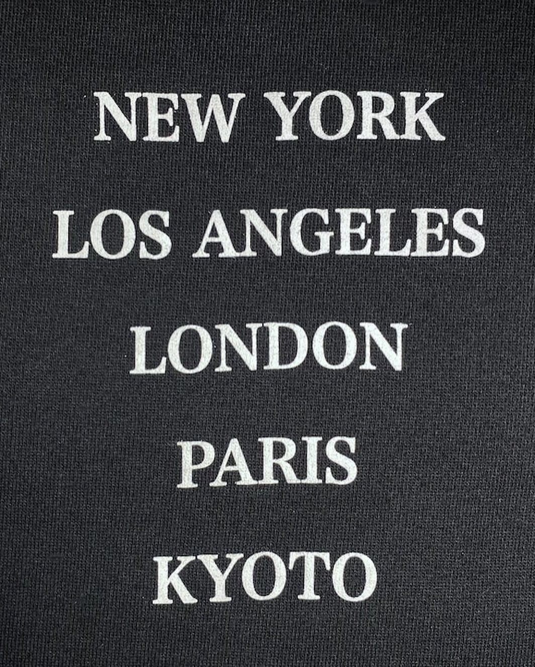 前面には世界各国の都市、日本ではKYOTOとプリントされており、ありそうで無かったユニークなデザインが特徴で着るだけで遠くへ旅した気分にさせてくれます。