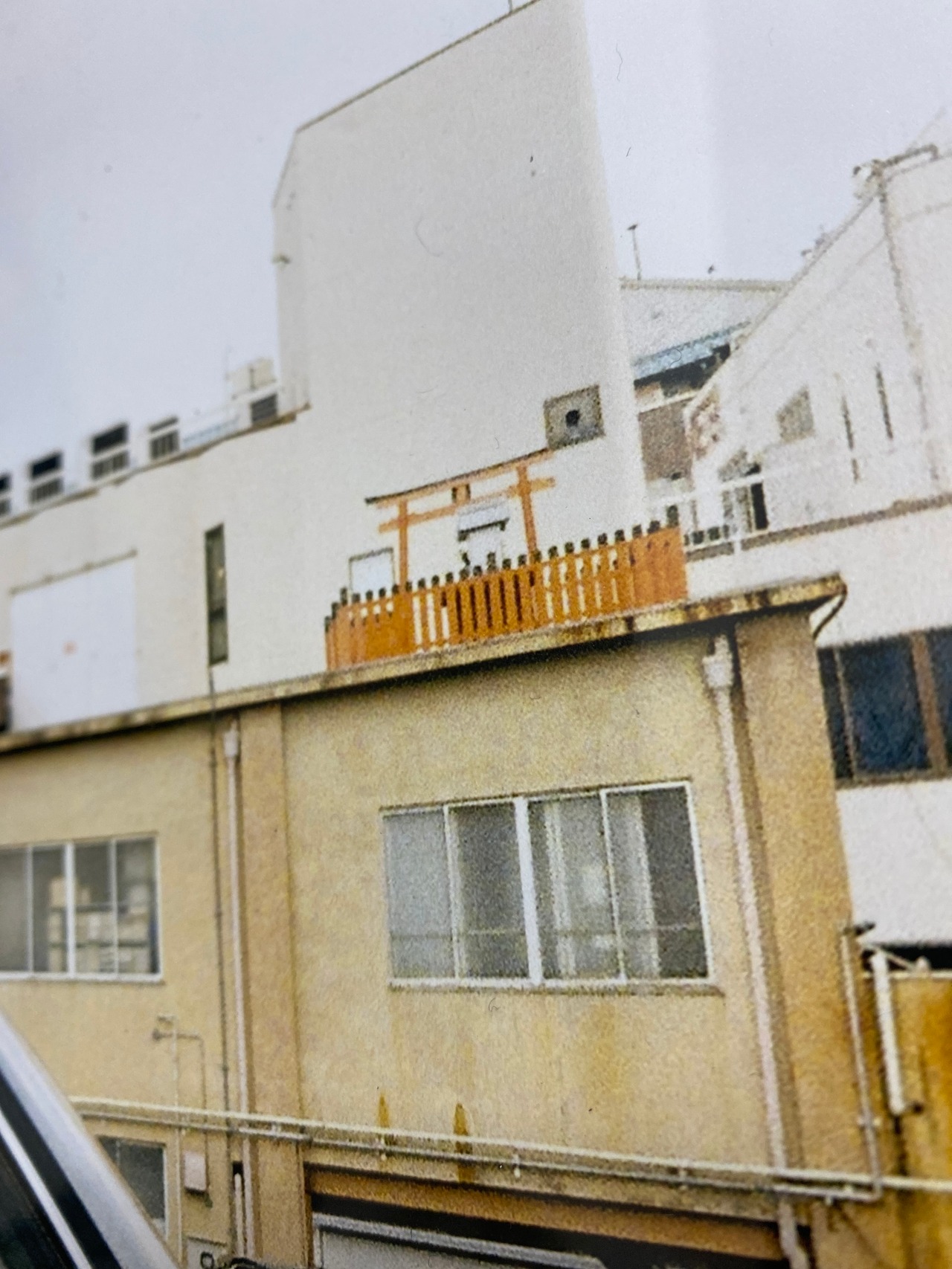 この時、僕は地元京都で自転車に乗りスケートパークへ向かう道中建物の上の鳥居を発見。