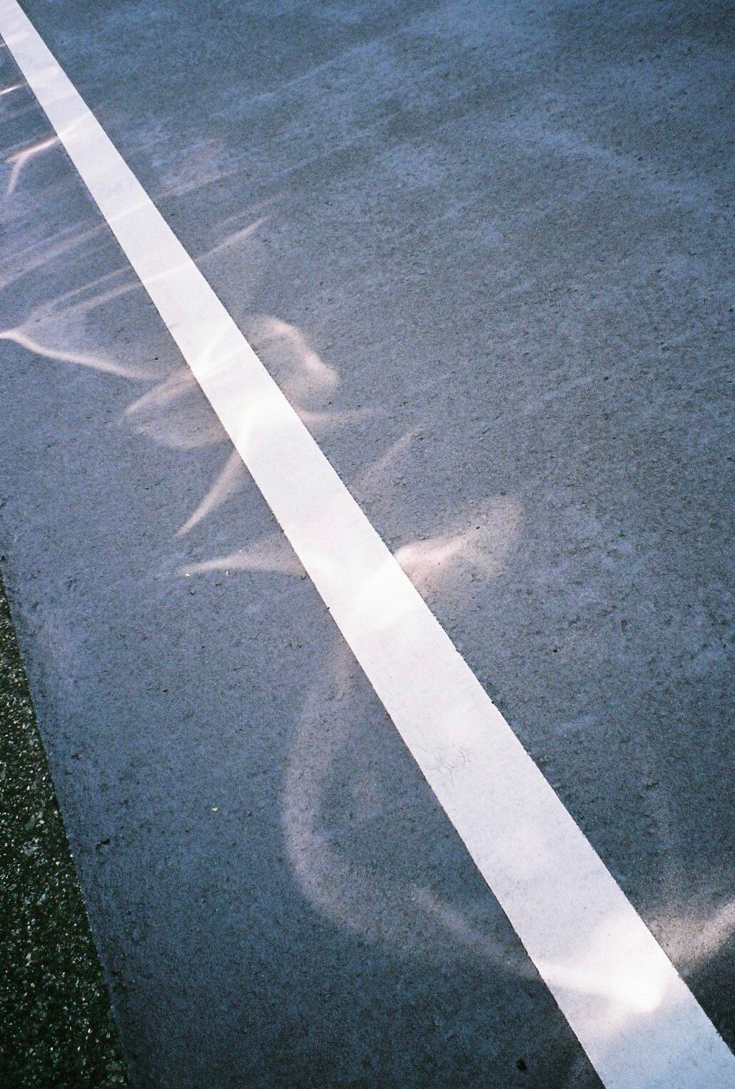 白線と光のカーテンとの融合が美しいと思い、撮影しました。